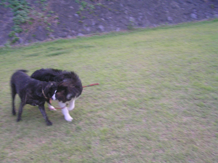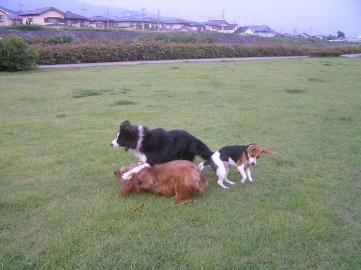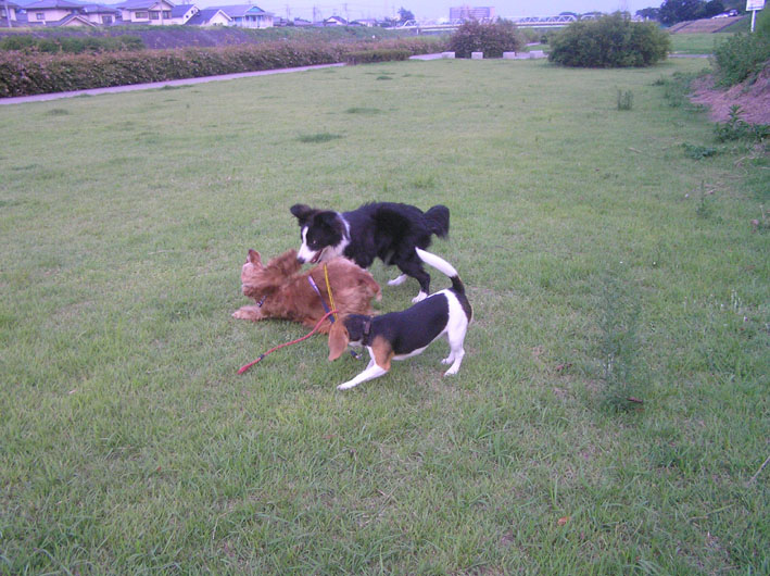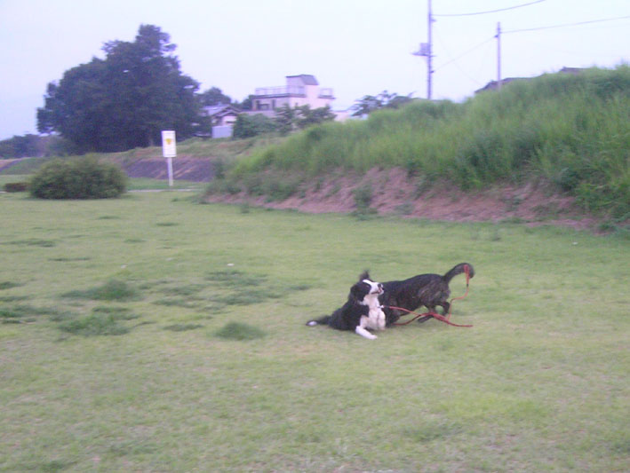 どうやら、お昼寝せず、にいちゃんと遊んでいたようです。夕方の散歩はパスかなと思いきやしっかり催促され、いつものように遊び回ってきました。