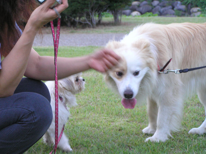小さいワンちゃんの写真を撮りたくてもビートがいると近寄らなかったり、ビートが手をださないか心配して写真どころではなかったのだが、それからのビートはやけによい子でママの側についておとなしくしている。ククちゃん効果バツグンだったのかも。