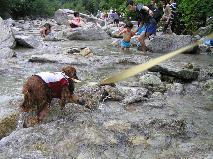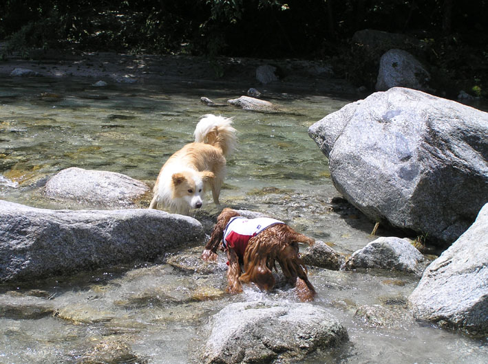 ビートはこの頃おとなしいと思っていたのですが、前日に河川敷沿の用水路に入ってしまい、なかなか出てきません。やっと出て来たと思ったら以前の走る走るビートになっていました。そんな事もあり、今日の水遊びは楽しそうー。