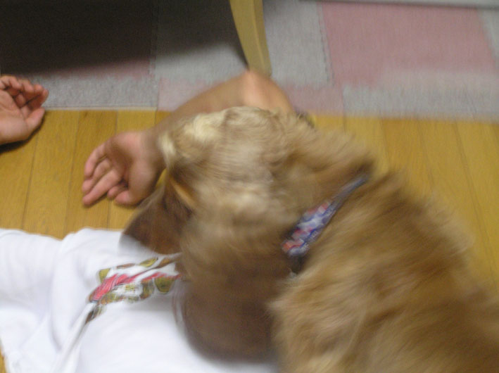 りんちゃんは屈託がなく、一緒に遊びまわりたいので走りまわるがすぐに捕まってしまいへそ天し、降参。でも、また走りまわるんだよ。本当にかわいいー。