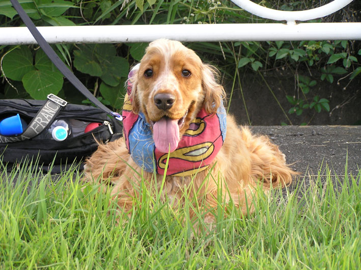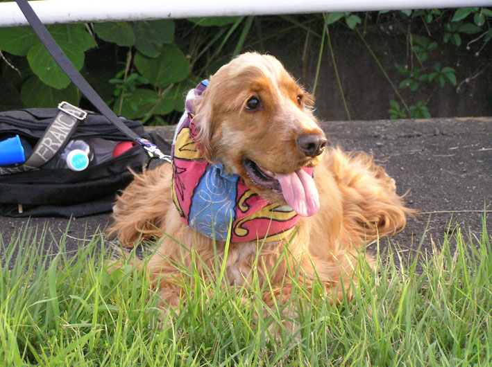 向いてくれるのはいいのだが歳と共に汗が首筋にまとわりついて不快感を増している私。よいお顔で返してあげられないのがチト、残念。えっ、別にいいからご褒美ちょうだいだって!そうだよな。こんなおばさんに恋してくれるワンコもいないか!