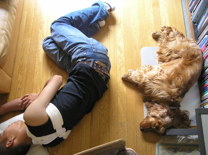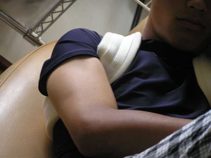 息子は今日の野球の練習中に電話が入り、ピッチングマシンでバントの練習をしていた所、急にマシンが暴投したらしく、デットボールをくらい、140kmの速さの硬式ボールが鎖骨にあたったためのお迎えコールとなり、そのまま病院へ.....。結果骨折全治6週間だそうだ。そのため、鎖骨固定ベルトをしたままお昼寝となった。