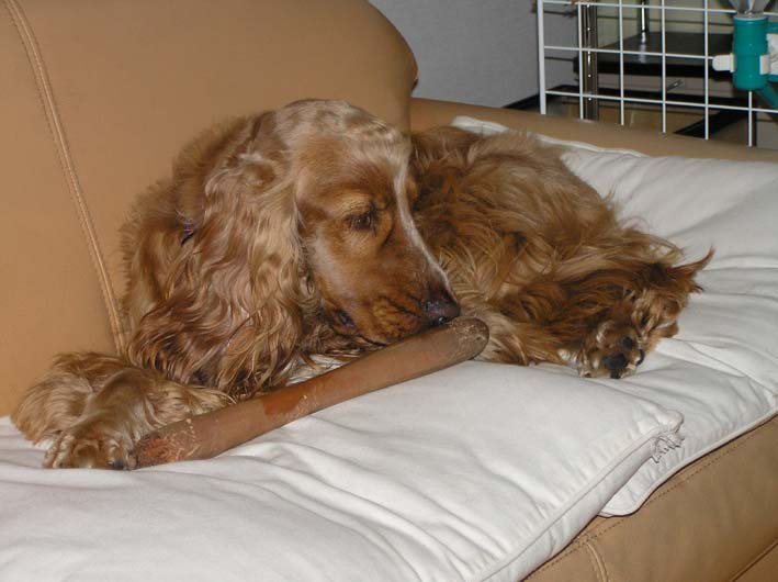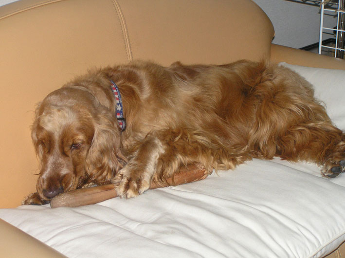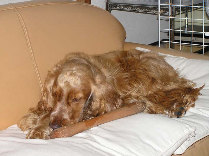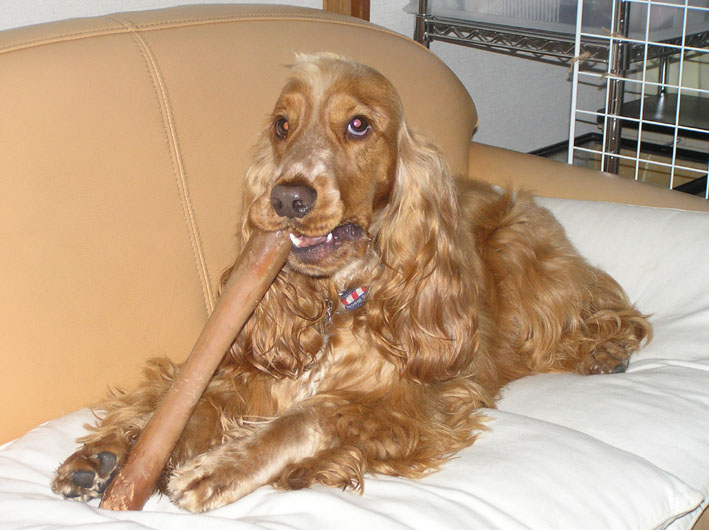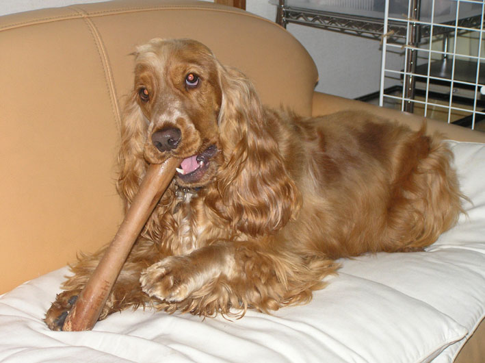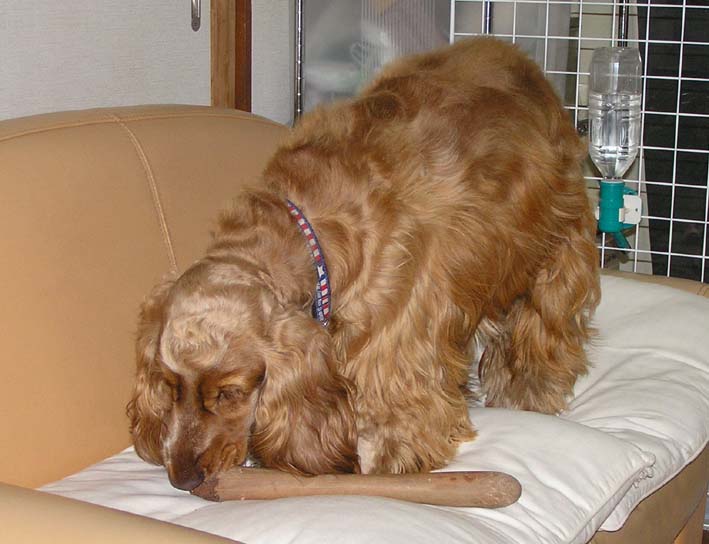 ビートは頑張ったご褒美、そして雨で散歩に行けないのでガリガリ棒で悪戦苦闘。