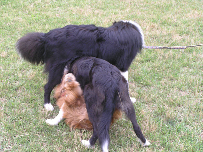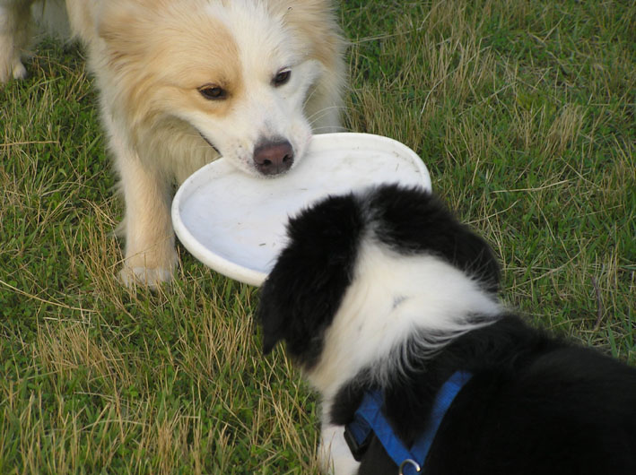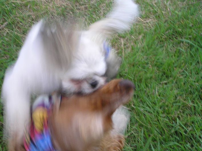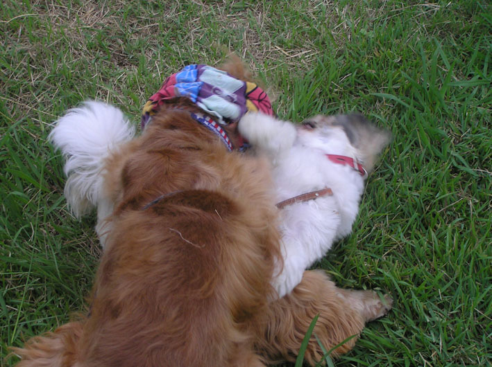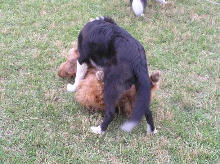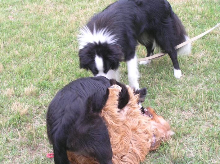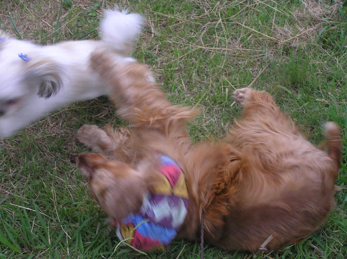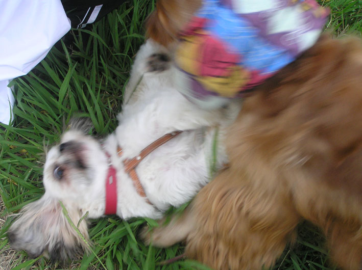 ボーダーにかなう訳のないビートが誘い一生懸命先に走る。追いつかれてゴロンと仰向けになり、ハグハグ開始。
