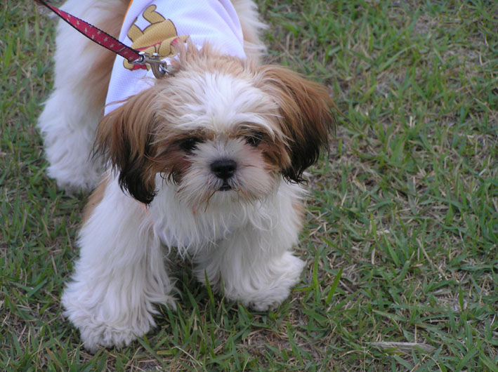 バイロン君はいつもきれいにフサフサした毛の持ち主。今日は洋服を来ていたのでフサフサ毛が洋服の重さでペシャンコになっていてバイロン君の細かった事がわかりました。骨格とか犬種によっても違いますが、ビートは少しおデブのようにみえます。ウー、ママと一緒だ。怖くて体重を計れなあ〜い!