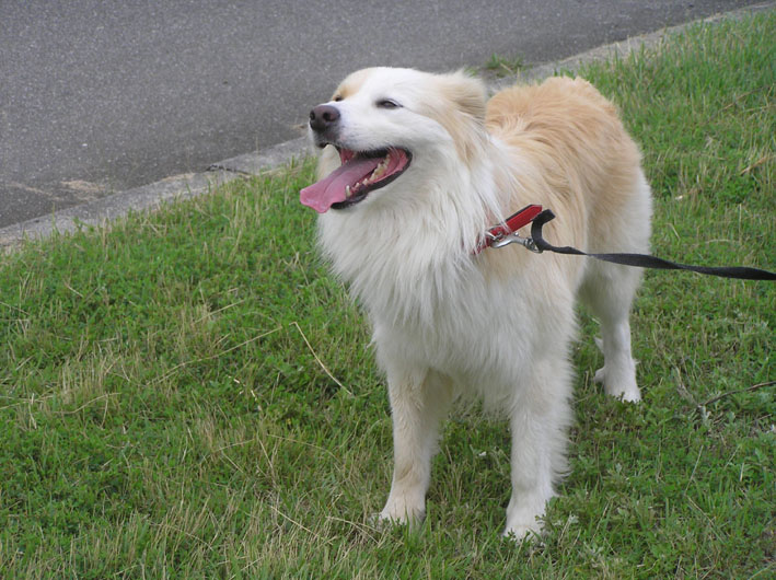 雨が降ったらお散歩中止ではあるが、意外にもお散歩時間に雨が降らず、楽しい思いをしているビートである。昨日ビートのコートの中にもぐりこんだ数々の物体は、散歩コースの一部分の場所である事がわかり、そこの場所は避けて(遊べせない)通る事にした。