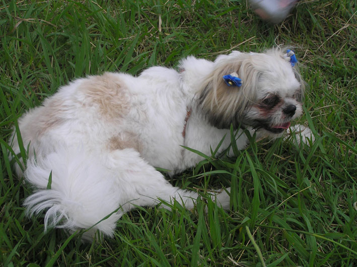 前回病院に来た時は、右目の目やにが多く診察してもらいました。その時は3人がかりで傷の検査、検査液をとる為の洗浄、目薬などされ、もうてんやわんやでした。病院が嫌いになったかもしれないと思いながら足どりは重く出向きましたが、ビッタレ犬がおバカ犬になってしまったようでまったくビビル様子なし。しっぽをフリフリご挨拶です。覚悟していった私がバカでした。しっかり首元に薬をつけてもらい、そのまま散歩に出発。