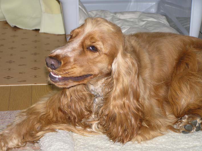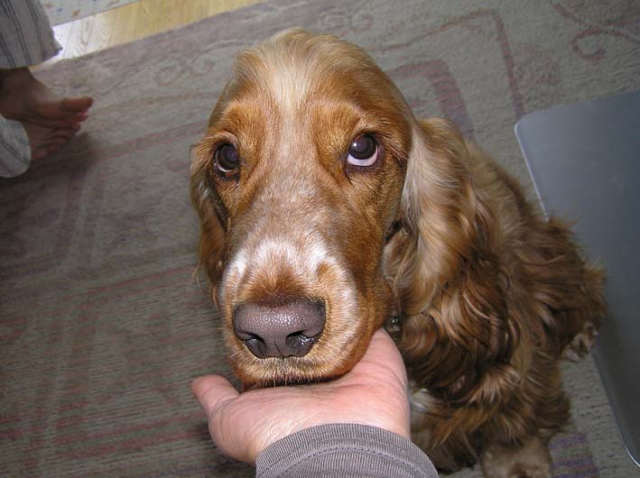 ビートはくまさんが大好きで、帰宅してくる車の音がするとしっぽがフル回転。もう速すぎてしっぽがみえません。そして、抱擁のペロペロ攻撃。これが終わるとゴロンと寝てしまいます。その後、あっちで寝たりこっちで寝たりとしてますがくまさんが寝るとビートは起きて来て、横になったくまさんをペロペロ攻撃し(この時のくまさんのお決まりせりふは、”息がつけない”です)ゴロンと自分の寝場所でねてしまいます。なんで、あんなに顔をなめまわすのか未だわかっていませんが?