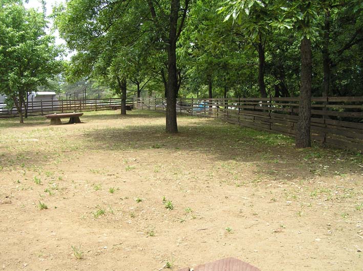 ジャーン。無料のドッグラン。入り口に紙が置いてあり、日付と犬何匹か、大人何人か書き込みポストに投函。だ〜れもいません。