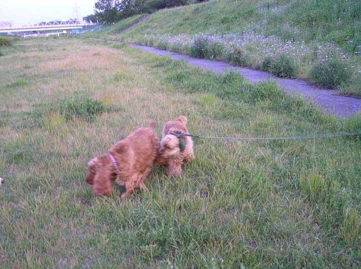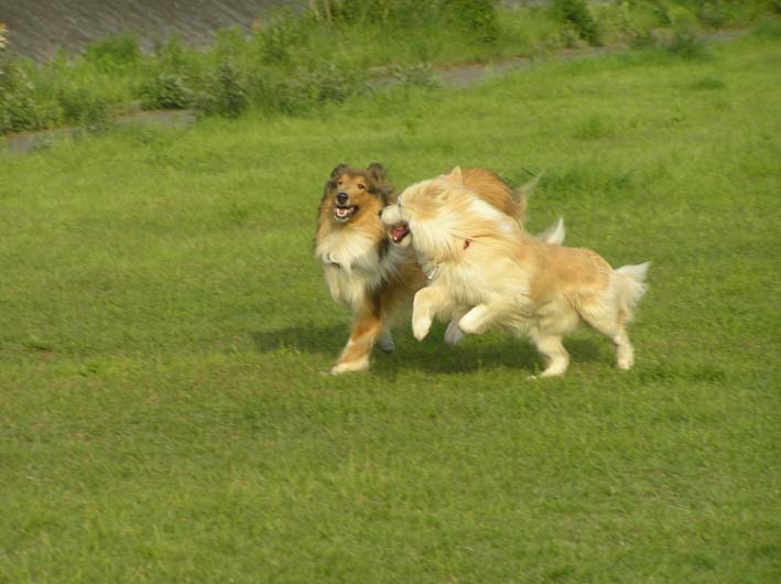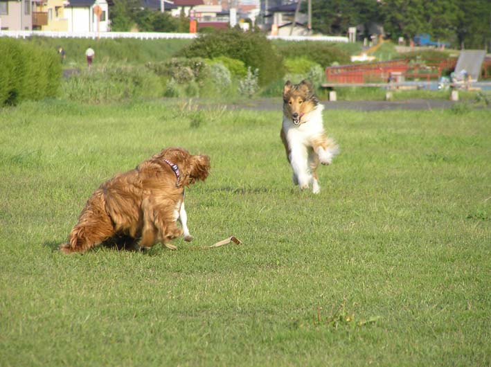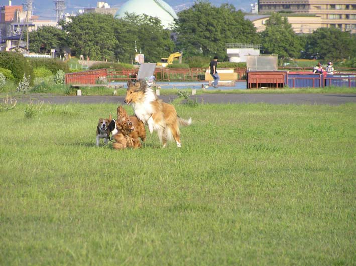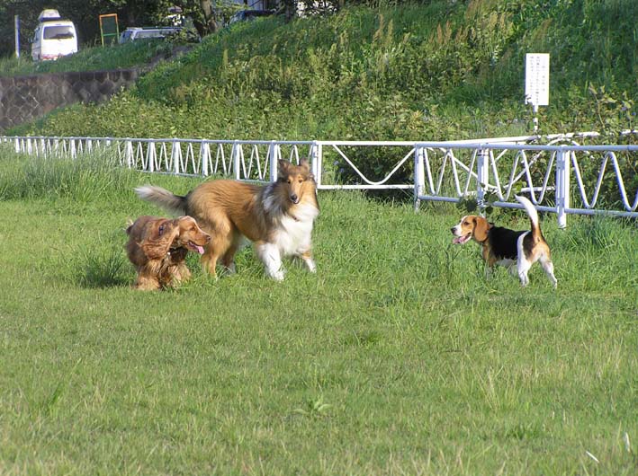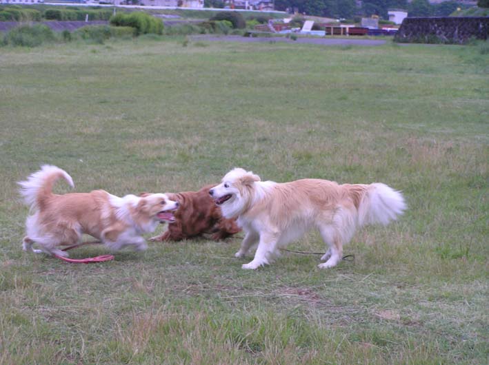 どうも、やはりしかけているのはいつもビートのようです。ではなくビートです。よく考えてみれば、この仕掛け屋ビートに振り回されるみんなは、迷惑なのかもしれません。ワンコとしては楽しいけど、飼い主にとっては慎ましいマナー教育をしたいし、しなくてはと思っているのかもしれません。ワンコとして、この開放感を味わってしまったらなかなか難しいですよね。犬種によっていろいろ違うし、境がどこまでとは一概に言えない事は確かです。ビートもそろそろお子ちゃまから卒業しなくてはいけない時期なのかもしれません。でも、本当に楽しそうなんだもん。
