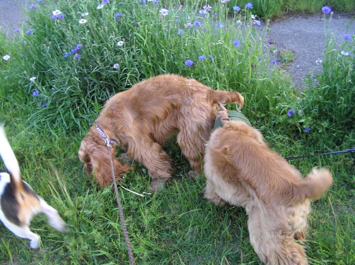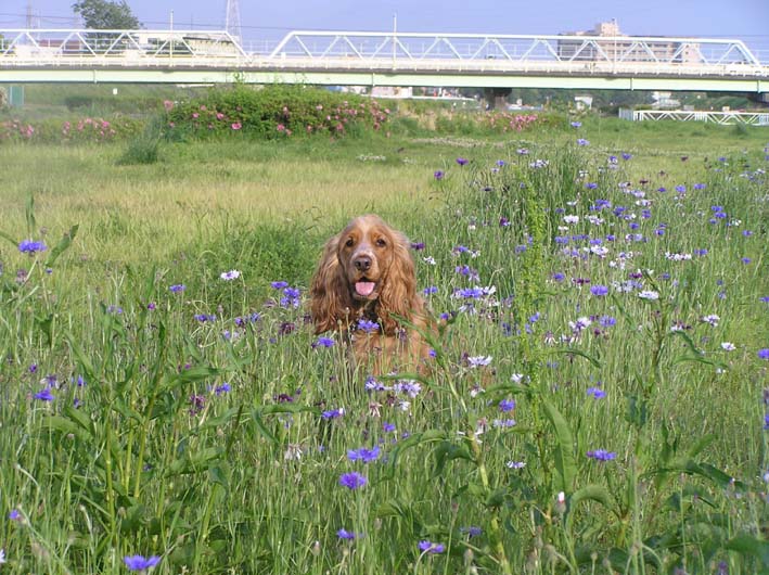 茂みが大好きなビートは、矢車草の花の中でも、飛びまわちゃいました。