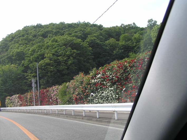 この辺では安いガソリンスタンドに行く途中に、毎年楽しませてくれるバラたちがみてみてと訴えかけています。今年も車の中から楽しませてくれました。