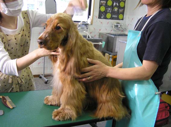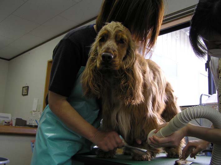 実は、しっぽの毛を少し、お尻の周りを少し。そして、顔、首、と頭を少し。が、今回思い切って初めて頑張って前足の前方と、後ろ足を切ってあげたのです。少しづつではありますがうまくなってきているのではないかと自画自賛させていただきますが、みなさんはエッ。どこ、わかんないと言っている事、間違いなしですよね。