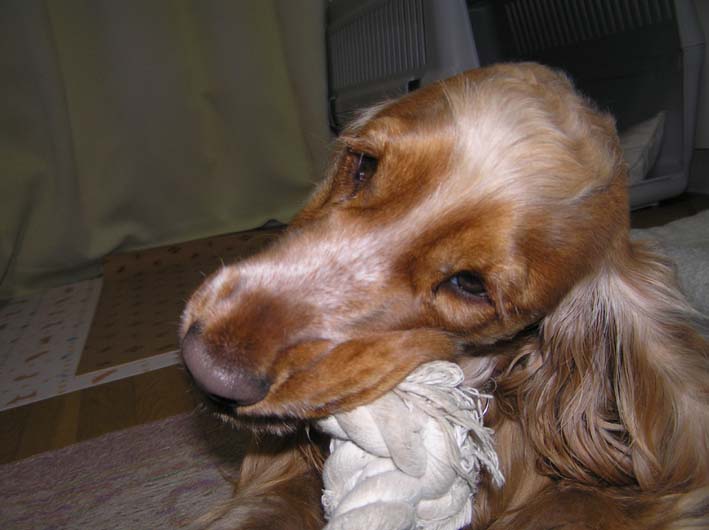 そうなんです。ふるちゃんは今山中湖だし、お散歩ではルビーちゃんとは会えず、チェル君とボール投げで遊びました。これでもうれしかったビートですが何か足りない様子。そう、ハグハグです。チェル君はヴァン君をあやす為にハグハグ遊びをしてあげるらしいです。と、言う事はやはりビートもこの辺でハグハグとは卒業しなくてはいけないのかな???でもでも、お散歩から帰ってからハグハグみつけました。久しぶりに登場するかみつきロープ。