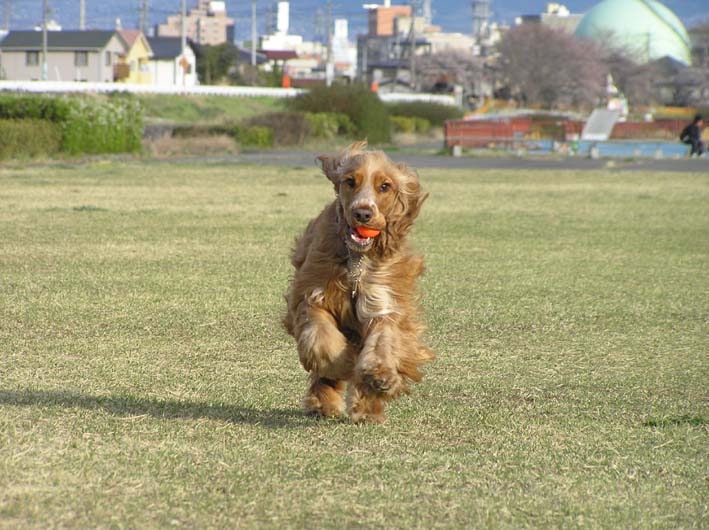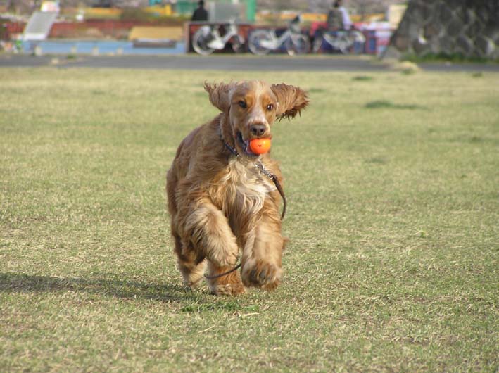 ボールを投げる時は以前より前にでるけどまだ遅いなあ。そして、ボールが跳ねた時に、キャッチする事を覚えてきているけど、うまく加えられず、落としちゃいます。(犬にしは、運動神経が悪いかも。)、ボールをとってからの戻りものろまちゃんでトコトコトコ。まあ、いいか。楽しんでいるようだし。愛嬌愛嬌。