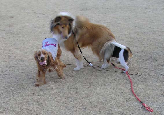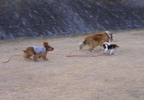 散歩行ってきました。たくさんのお友達に今日はあったよ。ルーク、蔵ノ輔、サーシャ、ターニャ、さくら、シロ、太郎、ボブ、ルビー、モカと言った具合で、ビートも最後の方ではヘトヘト。遊んでくれるワンちゃんにいっぱいあったけどビートはボブママが大好きみたく、そばにつきっきり。離れてもボブママがボブと呼ぶとビートが側へ行くのです。ビートと私が呼んでも全然見向きもしません。おかしでつってもダメ。ママは・わ・た・し・だよー。