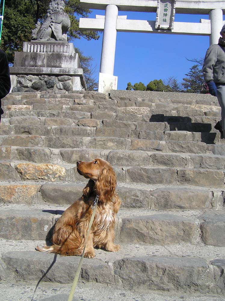 どうも!なかなか毎日ブログを書き込むのは難しいなあ〜。ネタがない日、写真が撮れなかった日、忙しく慌ただしい日、気分がマイナスな日。いろんな日があるよね。そんな中、昨日、松飾りなどを焼いていただくため、武田神社に行ってきました。もち、ビートも一緒です。元旦は、ビートを興奮させるだけでしたが、今回はあまり人もいなかったので、よかったかな。人がいないと言っても、参拝者はまだまだ絶える事なくいるので、離れた場所から、今一度、お参りしてきました。ビート君も落ち着いてハイポーズ