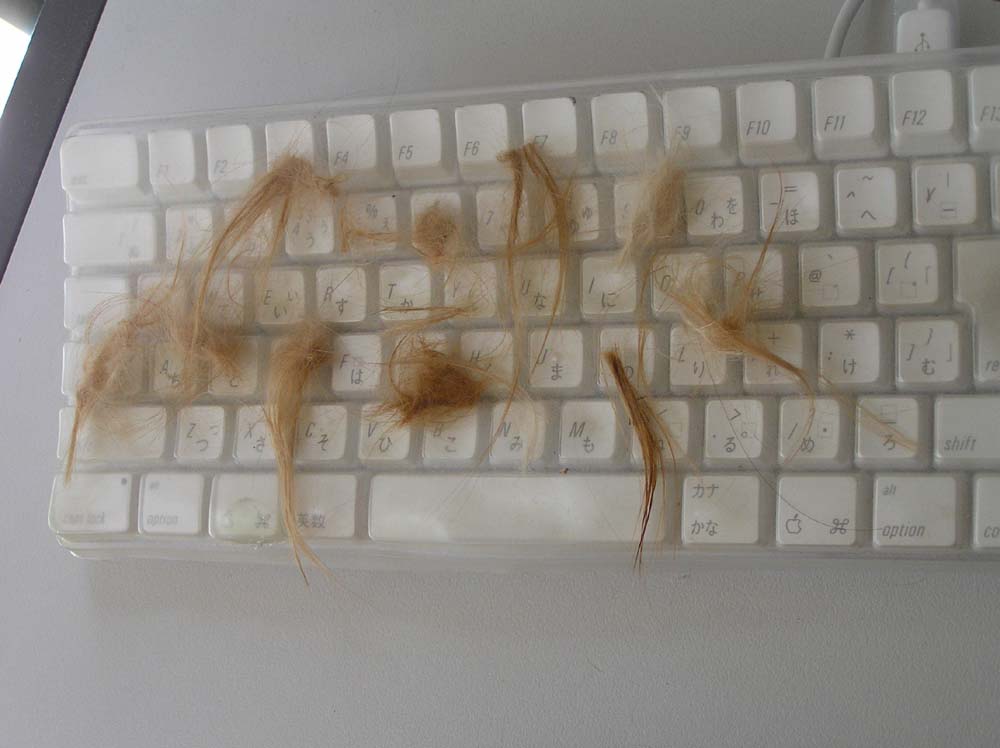 毎日朝夕2回、ブラッシングをするビート君。とても嫌いなので、追いかけ回しながらするのですが、どうしても脇の下と股の間ができません。毛玉の出来やすい所なのでブラッシングしたいのですが、私ひとりでは思うように手が届かず、股(チン○両脇)に毛玉が出来始めとうとう大きな毛玉となってしまいました。もう、切るしかないとパパさんにリードをつかんでいてもらい肌をきらないように手の感覚だけではさみでジョキジョキ。とれたとれた。